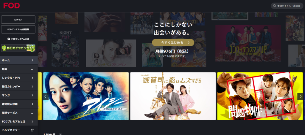 | FODプレミアム | 976円 | フジテレビが運営する動画や電子書籍の配信サービス |